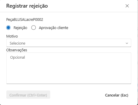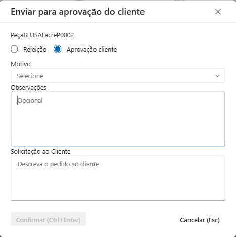 Utilize esta opção quando o processo a ser realizado depender da autorização do cliente, como por exemplo um tingimento em cor diferente da originalmente solicitada.