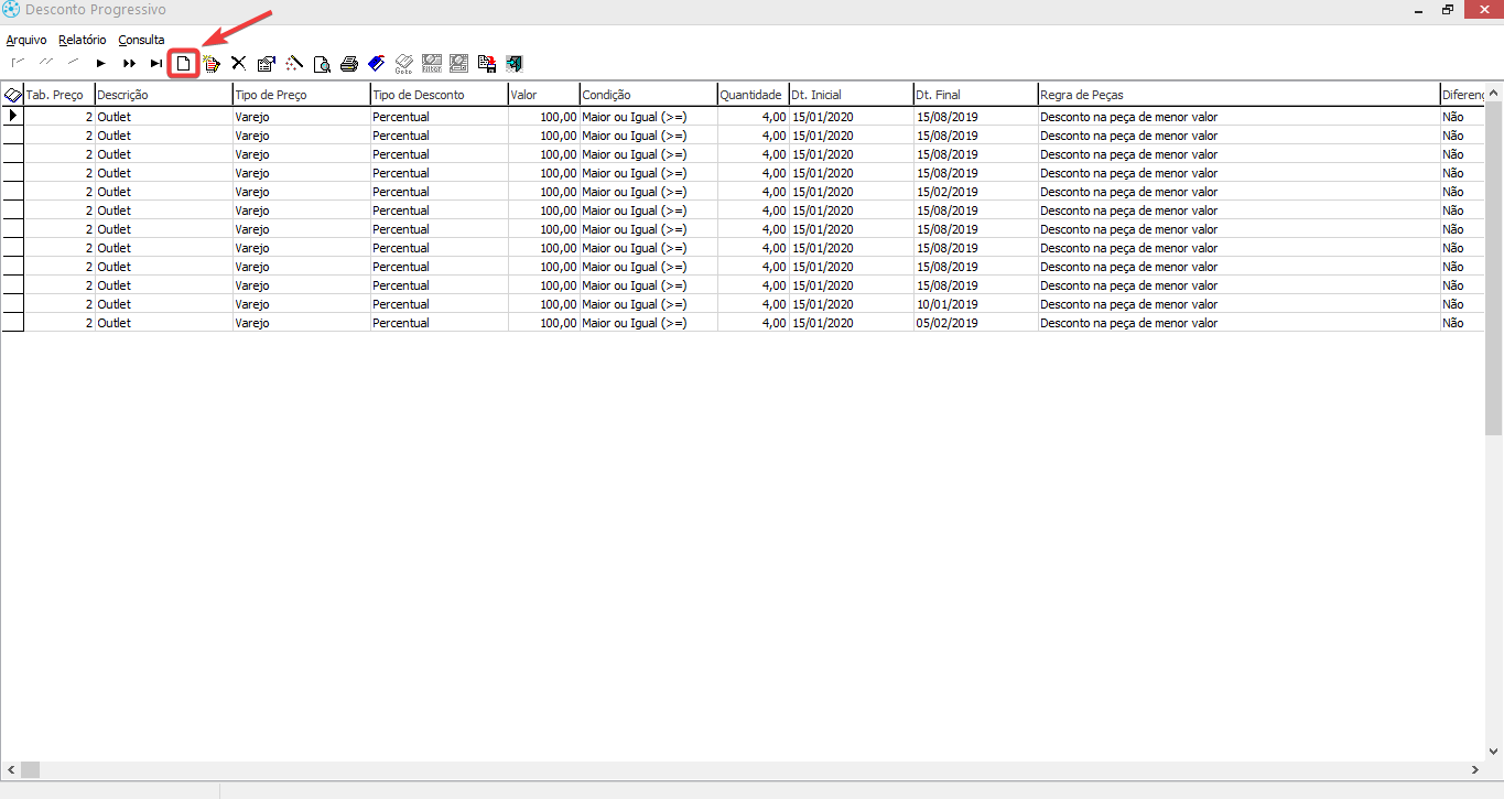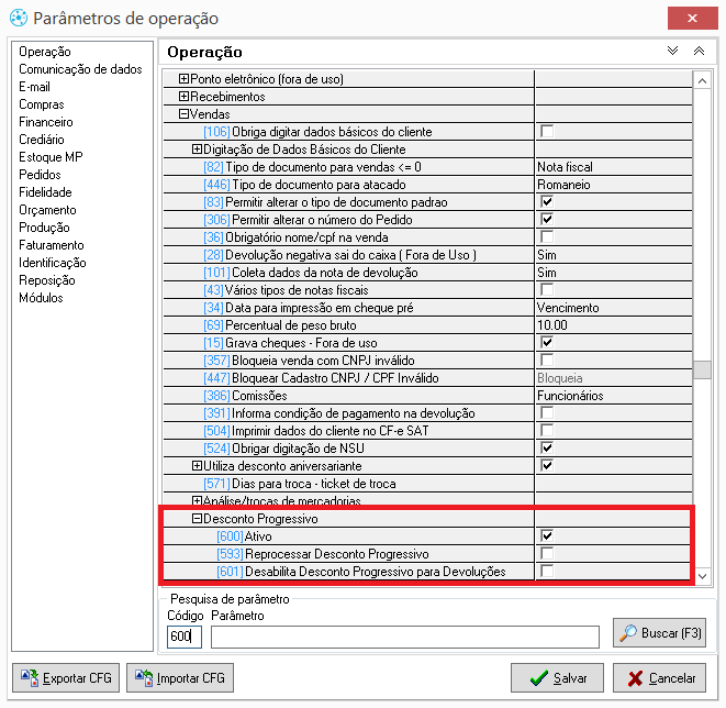 Retaguarda > Operação > Loja > Vendas > Desconto Progressivo