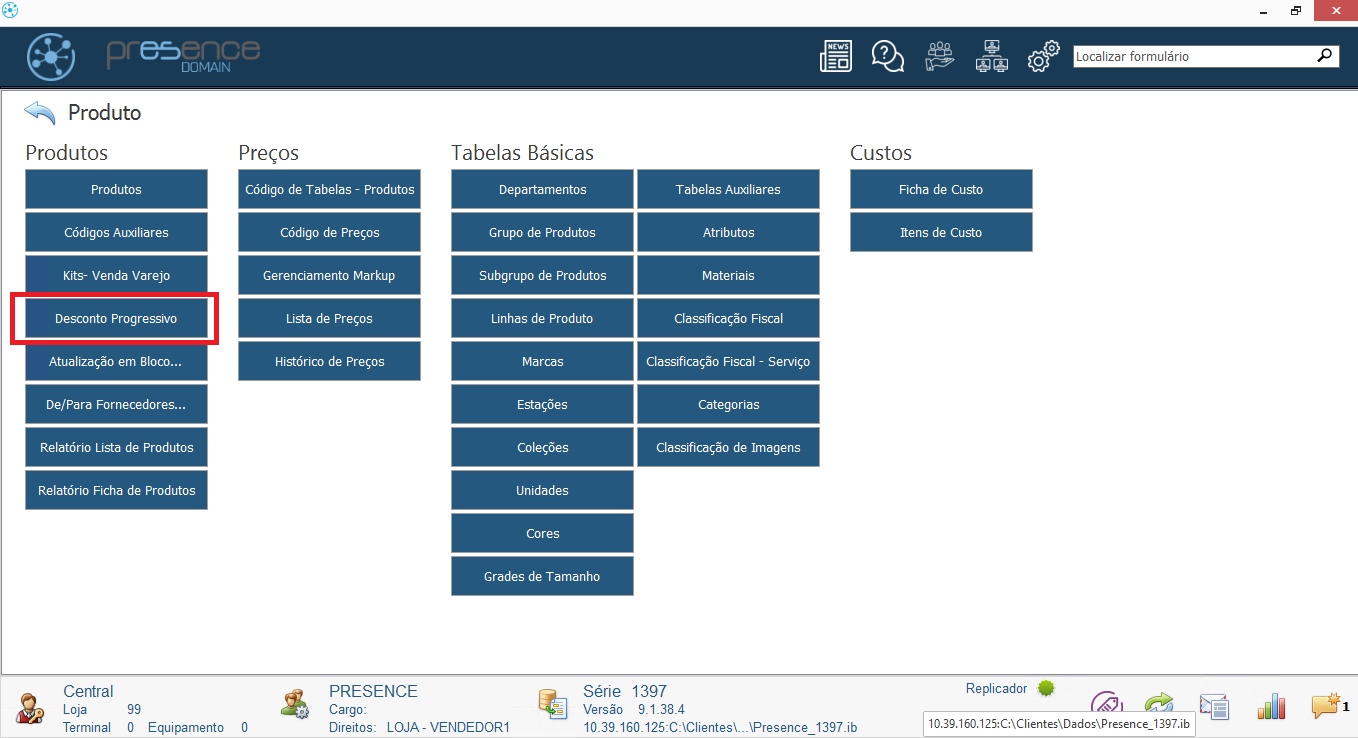 Após esse processo, a opção Desconto Progressivo passará a ser exibida no menu.