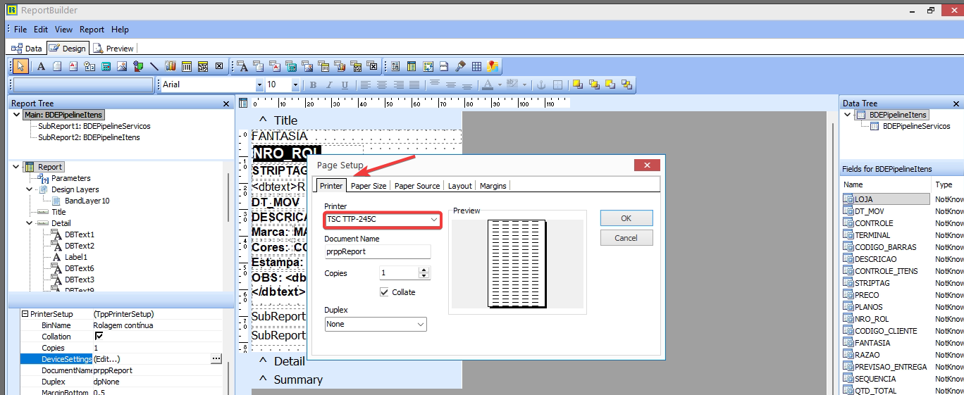 Localize a impressora utilizada pelo cliente, por exemplo TSC TTP-245C.