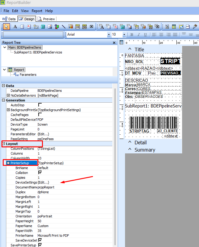 Em Parâmetro, selecione a opção Printer Setup.