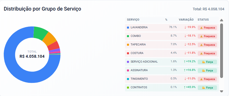 Esse painel permite identificar rapidamente: