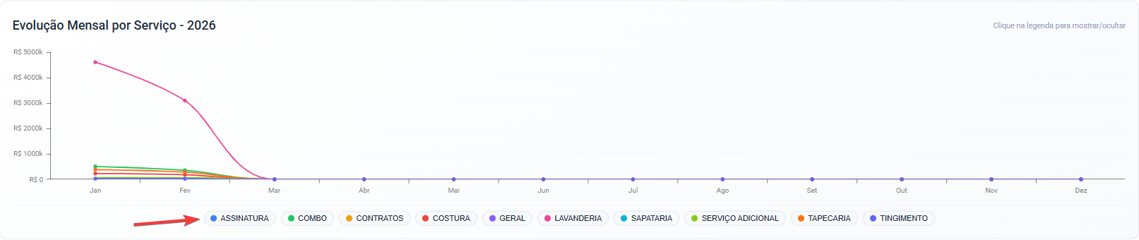 No topo do gráfico são exibidos: