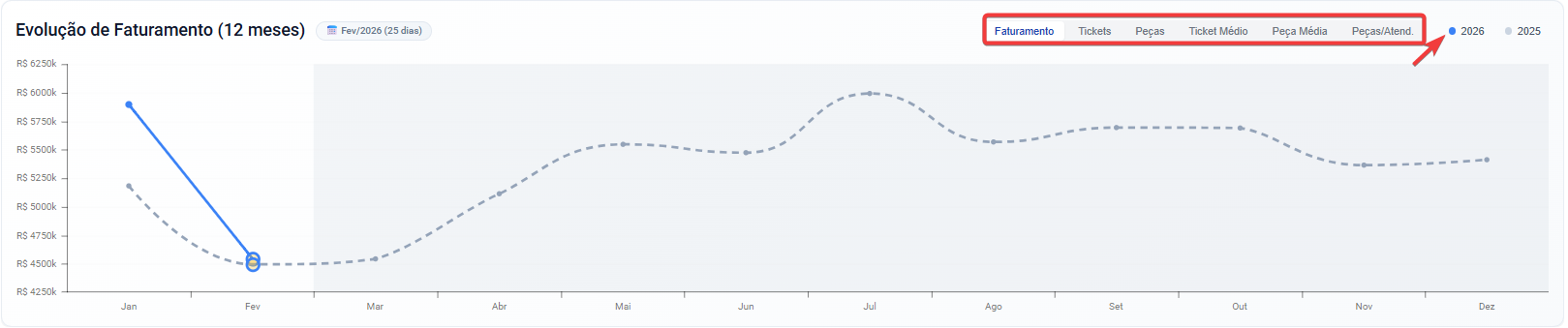 No topo do painel é exibido: