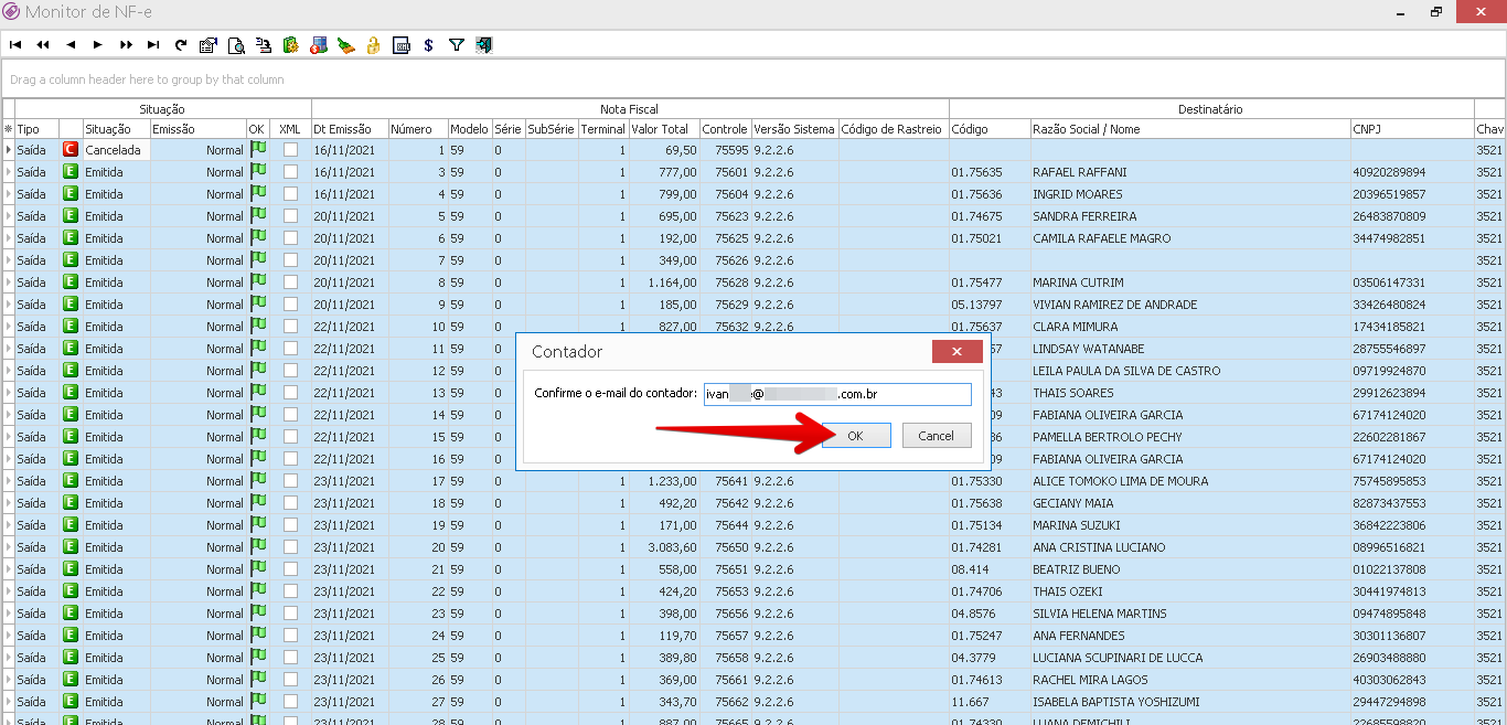 Caso o campo esteja em branco, informe o e-mail do contabilista manualmente.