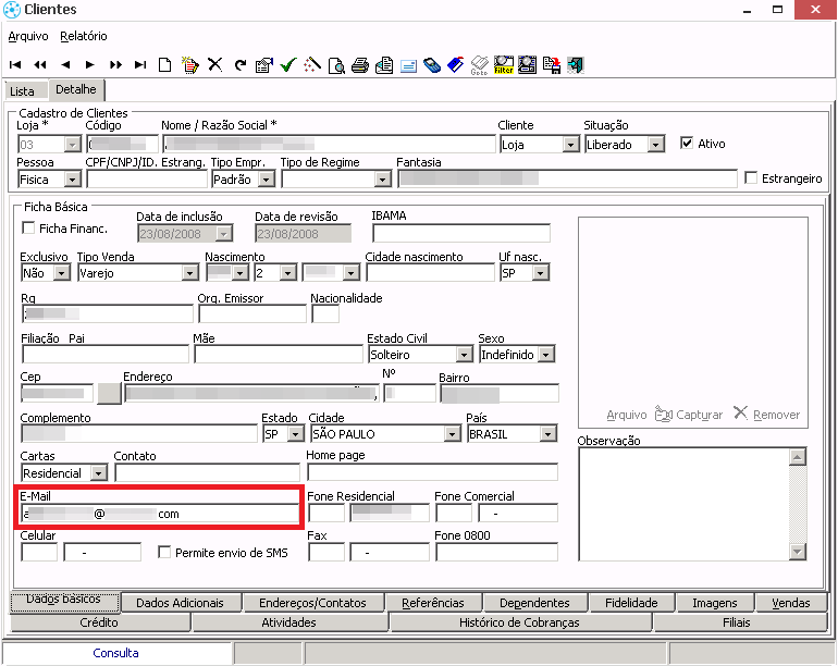 Retaguarda > Básico > Cadastros Gerais > Relacionamento > Clientes