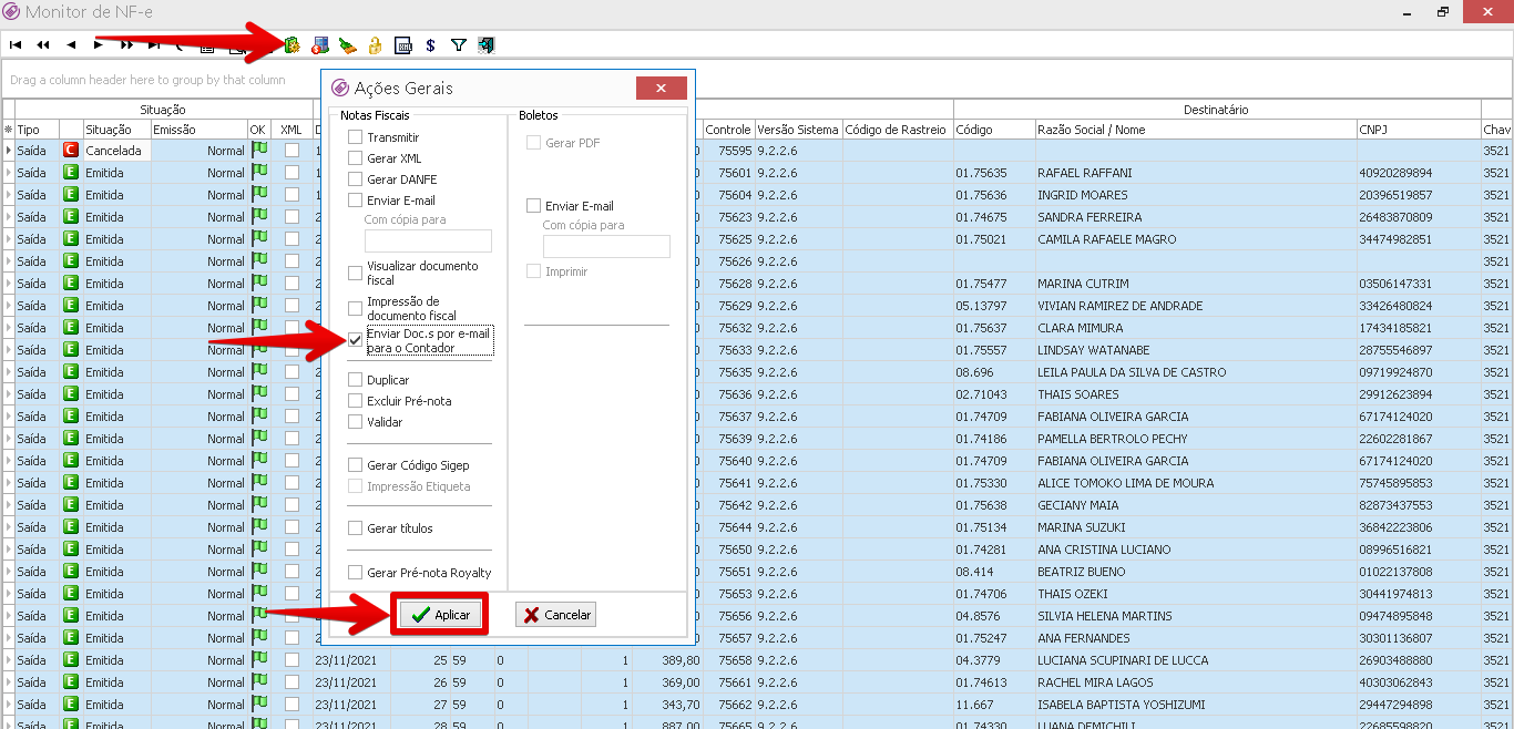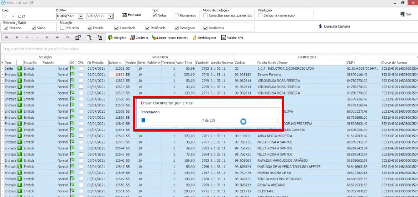 O envio dos documentos fiscais é realizado através das telas de consulta de documentos fiscais.