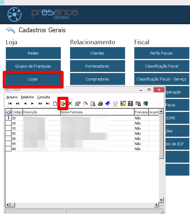 Retaguarda > Básico > Cadastros Gerais > Loja > Lojas