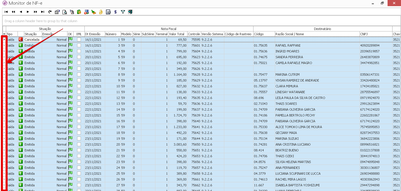 Retaguarda > Básico > Notas Eletrônicas > Documentos Fiscais > Consulta NF-e
