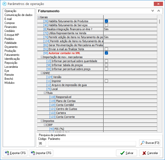 Localize o parâmetro [95] Autorizar Contador no XML.