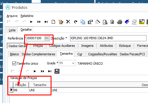 | 99 | Posição do tamanho |