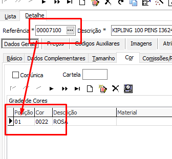 Caso seja informado apenas a referência ou apenas o código da cor, o sistema poderá apresentar erro de produto não encontrado durante a importação.