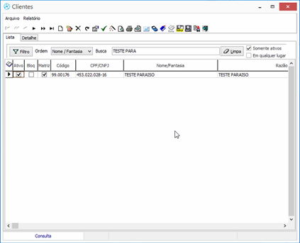vou realizar a Pesquisa, por exemplo no caso de cliente, podemos selecionar a