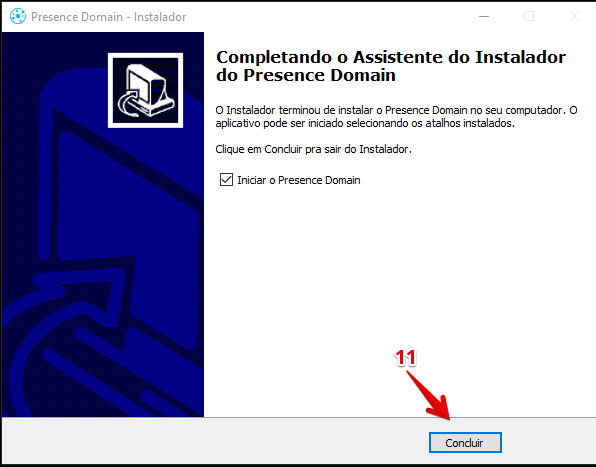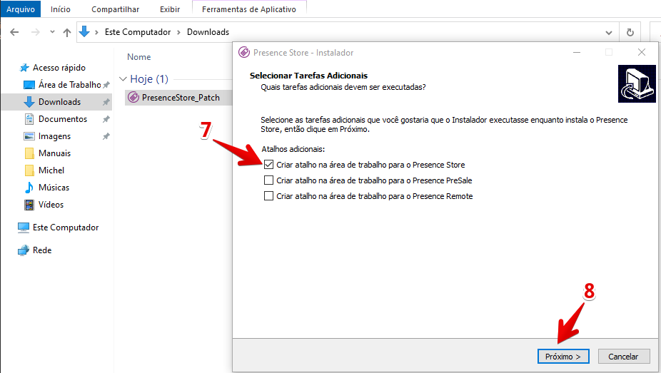 7. Após execução do Instalador marque a opção para ''Criar atalho na área de trabalho para o Presence Store''