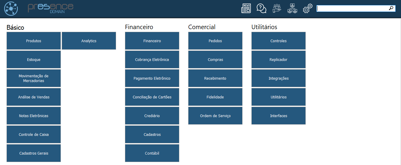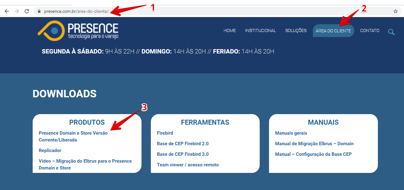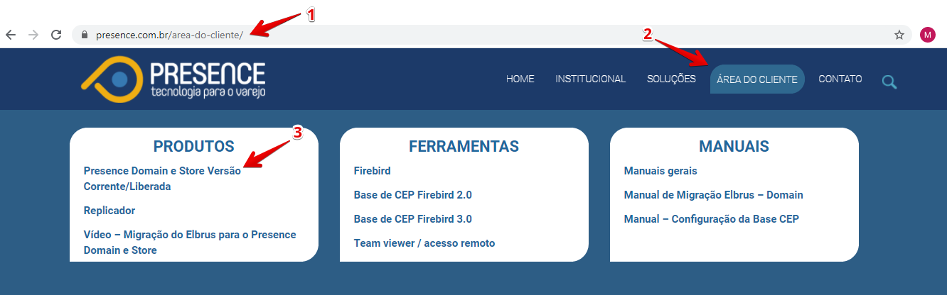 Produtos clique em Presence Domain e Store Versão Corrente/Liberada.