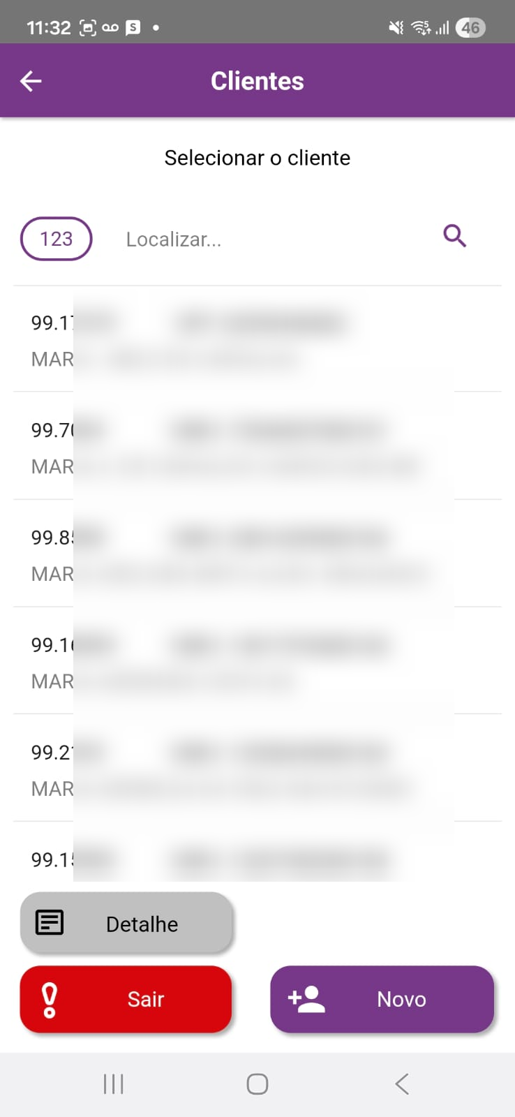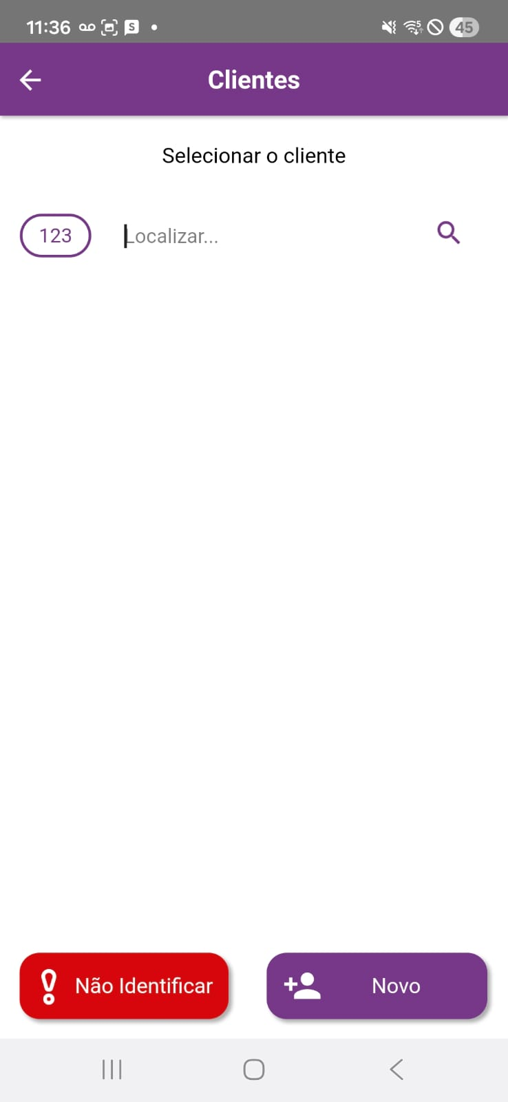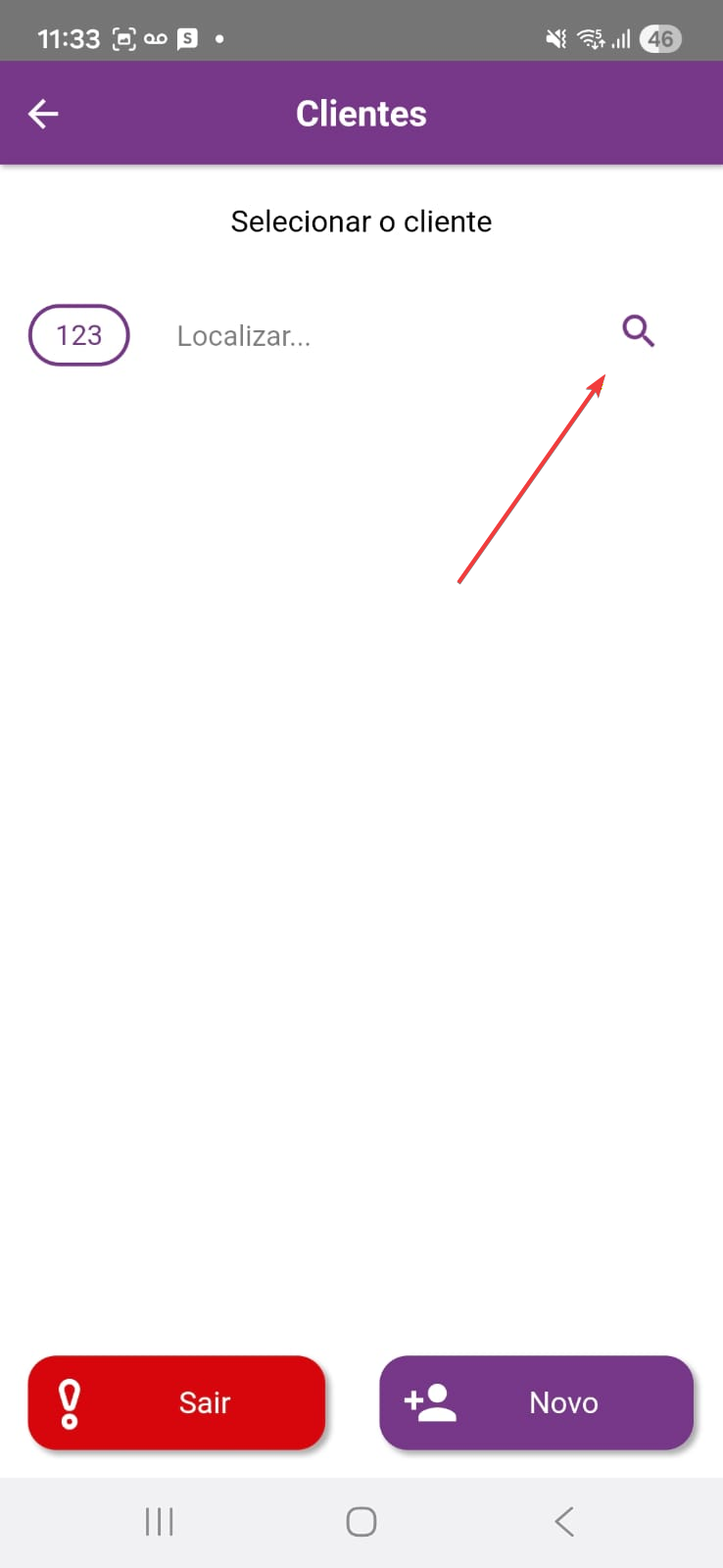 Para localizar um cliente, basta pesquisar utilizando o nome do cliente no campo de busca.
