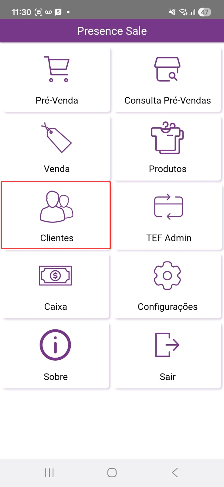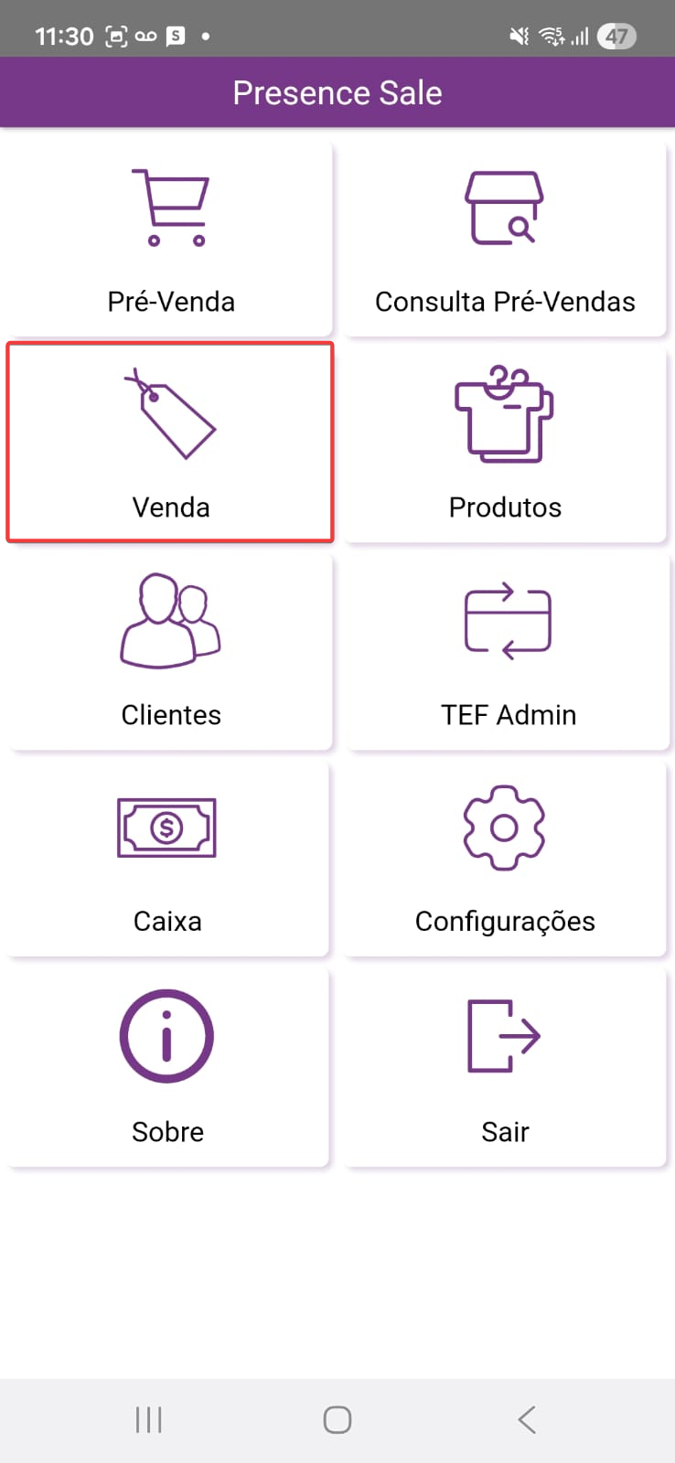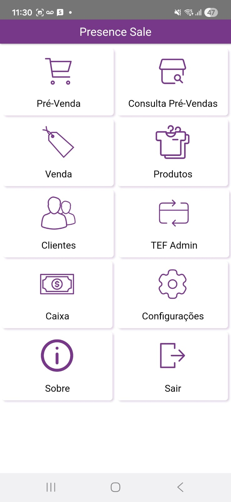 O aplicativo Presence Sale possui os seguintes módulos principais: