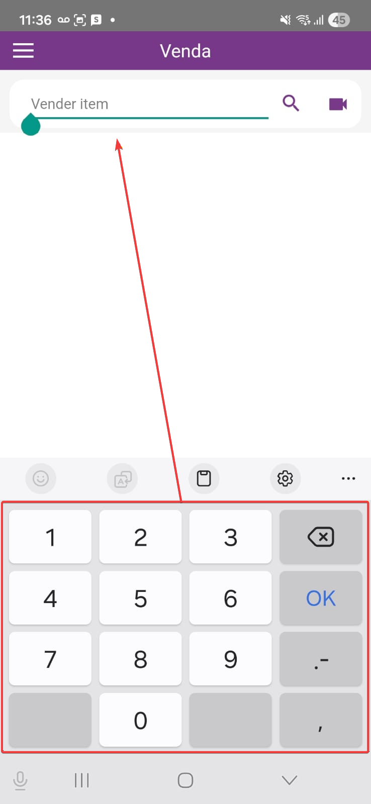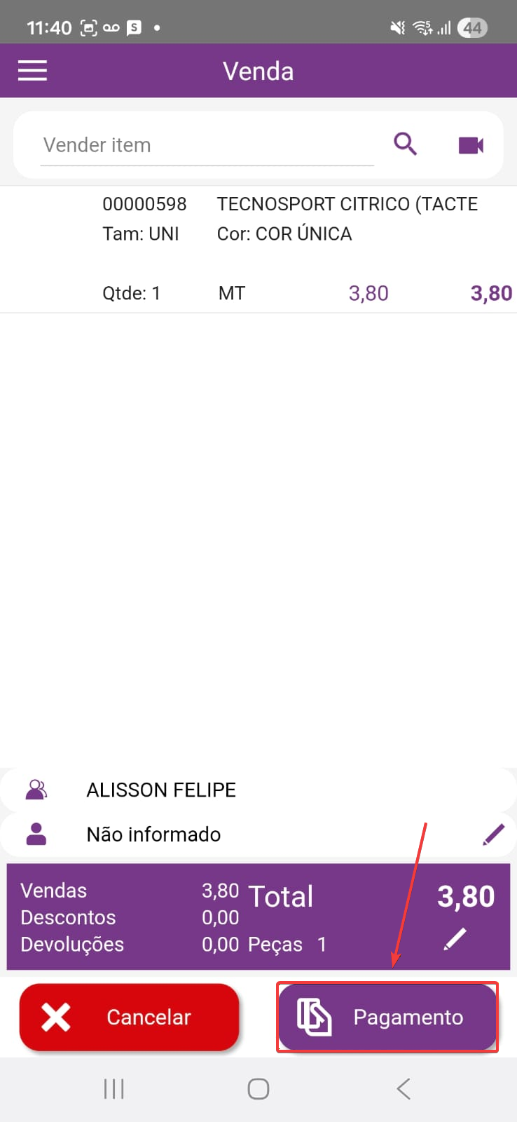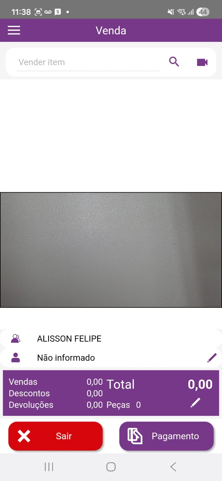 Após selecionar ou cadastrar o cliente, o sistema exibirá a tela para inclusão dos produtos na venda.