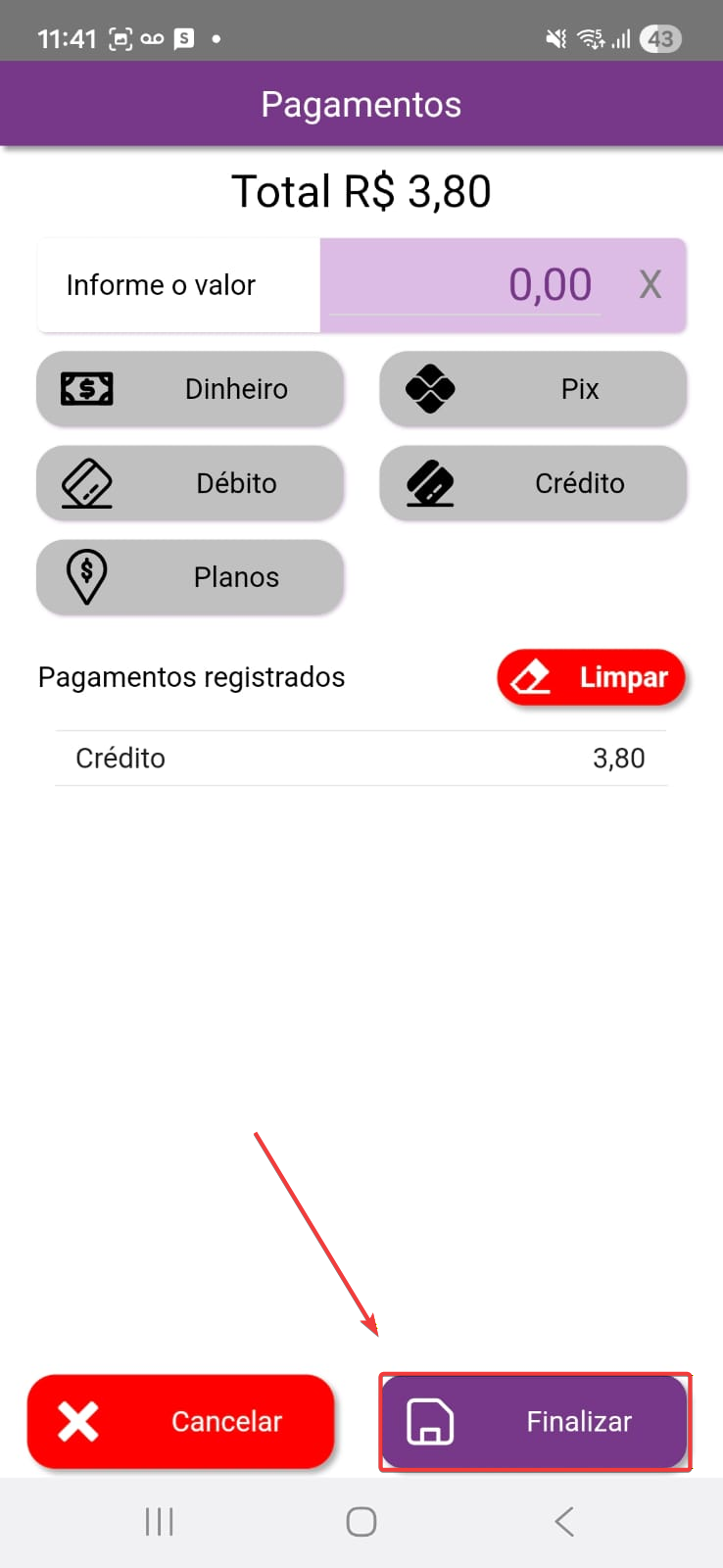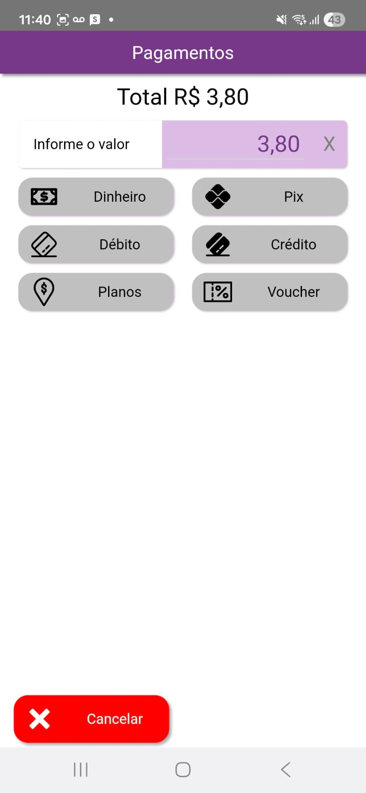 Selecione a forma de pagamento desejada e informe o valor do pagamento, quando aplicável.