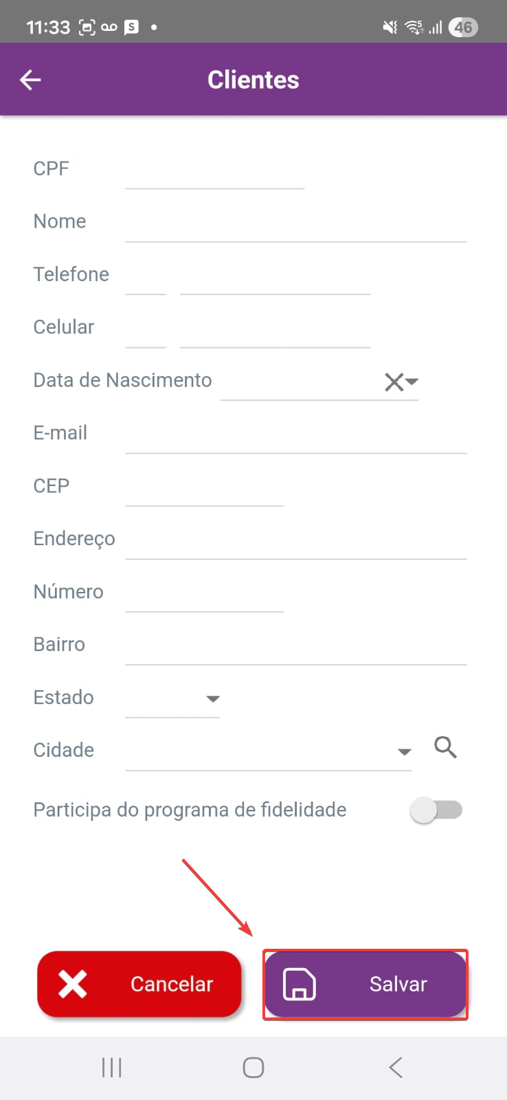 Caso o cliente ainda não esteja cadastrado, é possível realizar o cadastro neste momento: