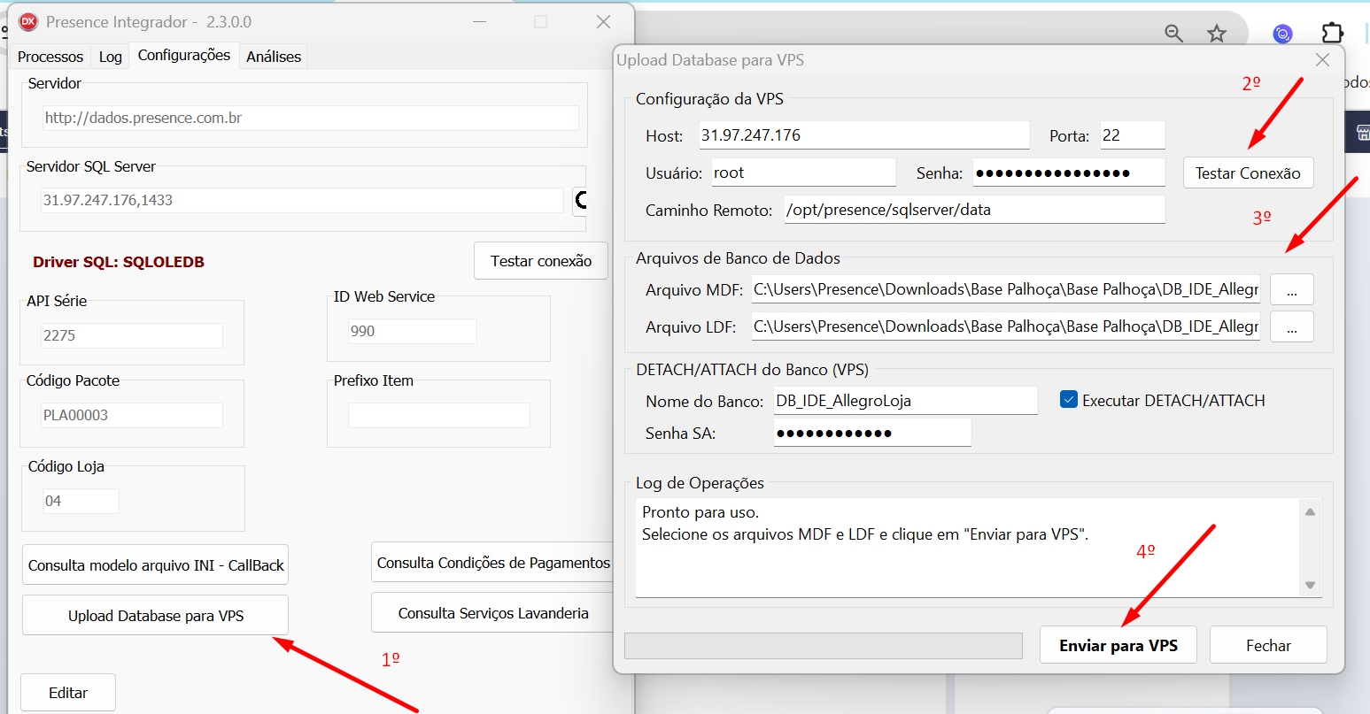O sistema executará automaticamente o processo de DETACH/ATTACH do banco na VPS.