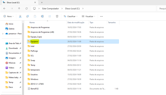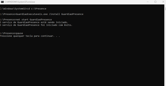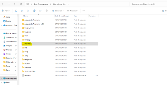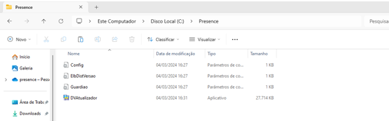 Ao final, a pasta C:\Presence deve conter 8 arquivos