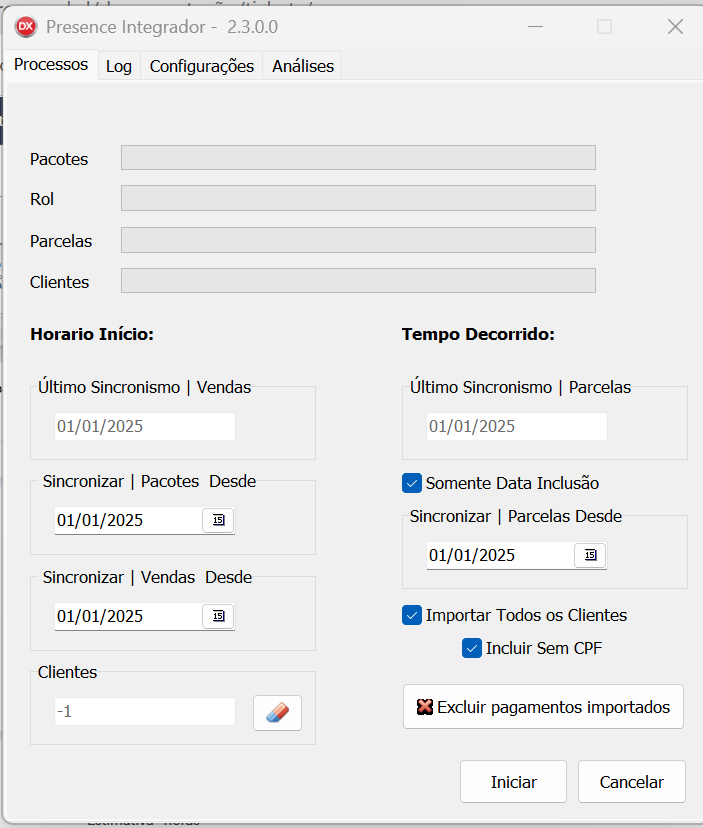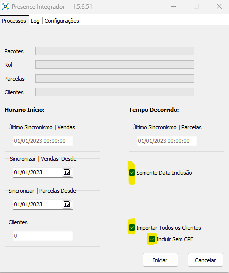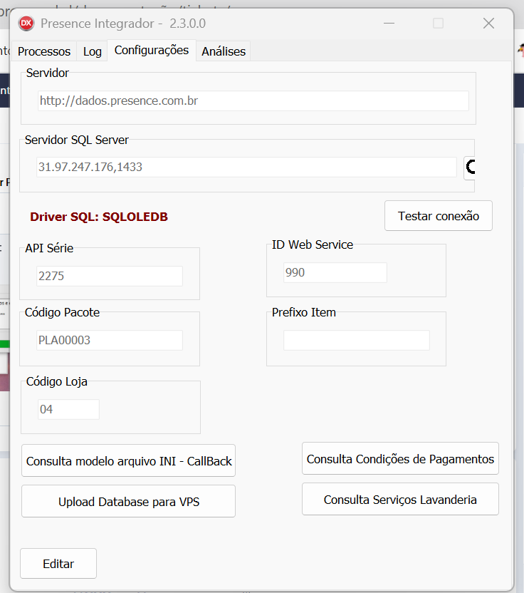 Caso existam no arquivo, substituirão as configurações locais ao iniciar o Integrador.